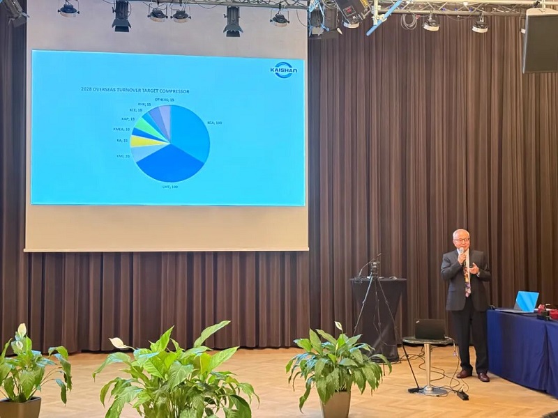 此次會議主(zhǔ)題是總(zǒng)結2025年工作,報告2026年預算。各公司參加會議的團(tuán)隊集體亮相,逐一登上講台,總結即將(jiāng)過去的2025年得失(shī),分析各自所在市場的競爭態勢,明確即將到來的2026年(nián)工作要(yào)在鞏固已經取得的市場基礎上,下一階段主要的努力(lì)方向。根據各公司報告,2025年海外壓(yā)縮機業務收入預計接近2億美元,2026年收入預算高達2.5億美元,增幅超過35%。