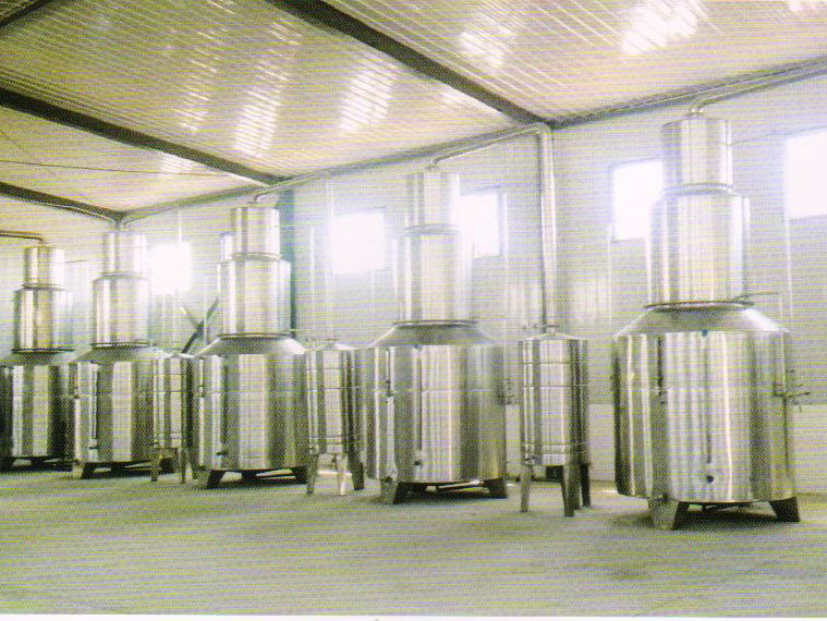 用(yòng)傳統釀酒設備釀酒技術為:質料→浸泡→初蒸→燜糧→複蒸(zhēng)→出甑攤涼→加曲→裝桶培菌→加水(shuǐ)平配糟→裝桶發酵→蒸餾→成品酒。