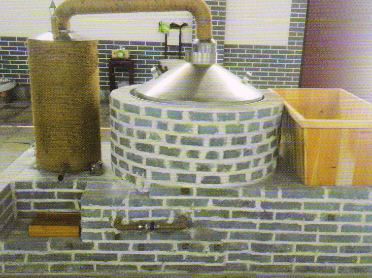 用传(chuán)统酿酒设备酿酒技术(shù)为(wéi):质料→浸泡→初蒸(zhēng)→焖粮→复蒸→出甑摊凉→加曲→装桶培菌→加水平(píng)配糟→装桶发酵→蒸馏→成品酒。